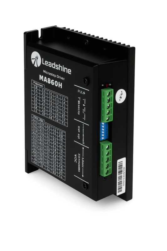 Driver motor pas cu pas DMA860H comandă motoare pas cu pas hibride (2 faze), asigurând poziționare precisă, viteză stabilă și cuplu optimpe întreaga plajă de lucru. Este potrivit pentru aplicații care cer mișcări lineare/circulare de precizie (frezare contur, gravare, găurire multiplu, poziționarea opritoarelor).